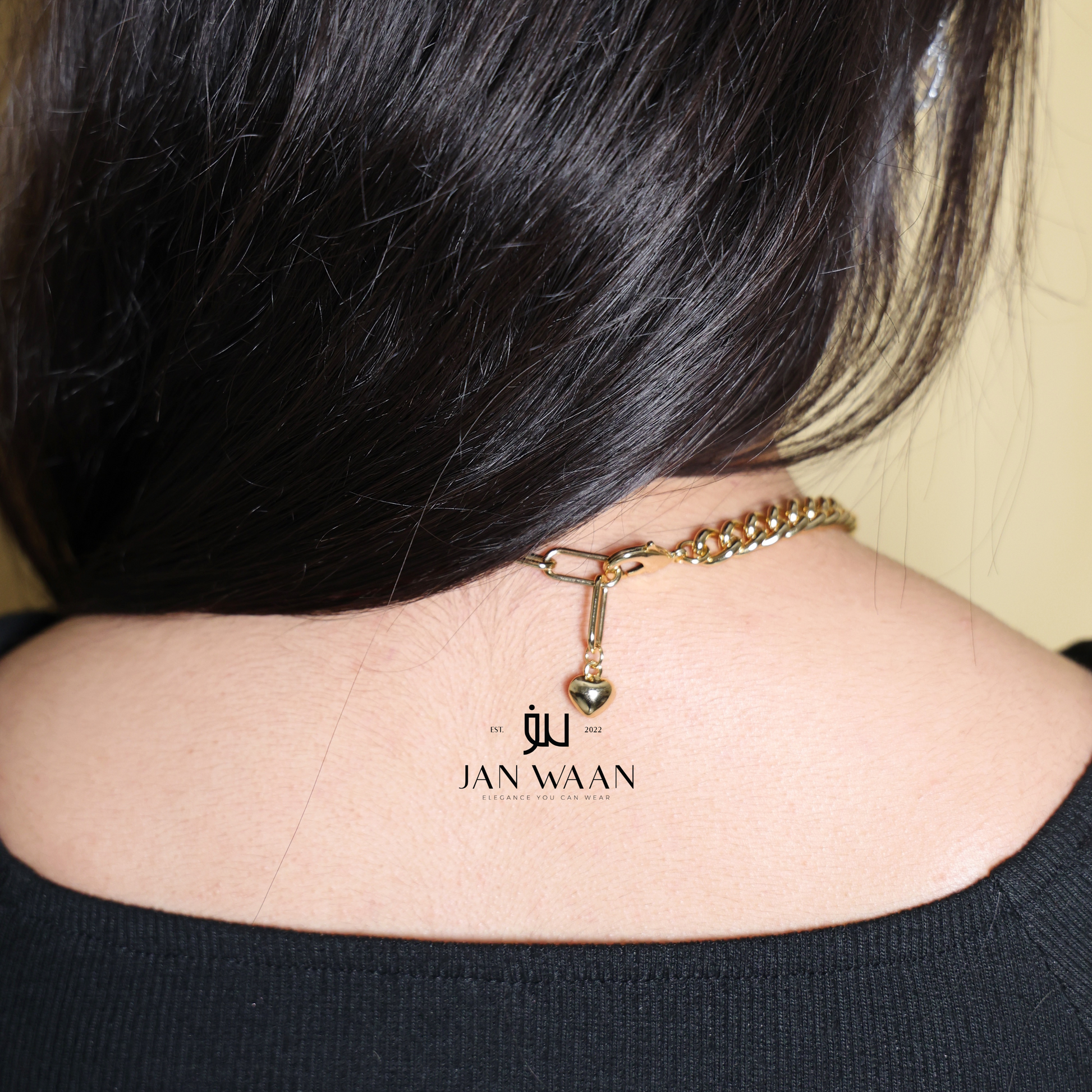 This elegant pearl and gold chain necklace by Janwaan is a stunning blend of classic charm and modern design. It features lustrous pearls set against a unique gold chain with a mix of chunky links and delicate metal accents, making it perfect for both casual and formal wear.